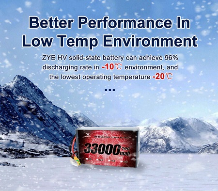 Hladno vremenske zmogljivosti: V hladnejših podnebjih baterije Lipo pogosto doživljajo zmanjšano zmogljivost in zmogljivost. V trdnih baterijah pa ohranjajo svojo učinkovitost tudi pri nizkih temperaturah in zagotavljajo, da lahko kmetijski brezpilotni letani učinkovito delujejo v hladnejših letnih časih ali v regijah z ostrimi zimami.