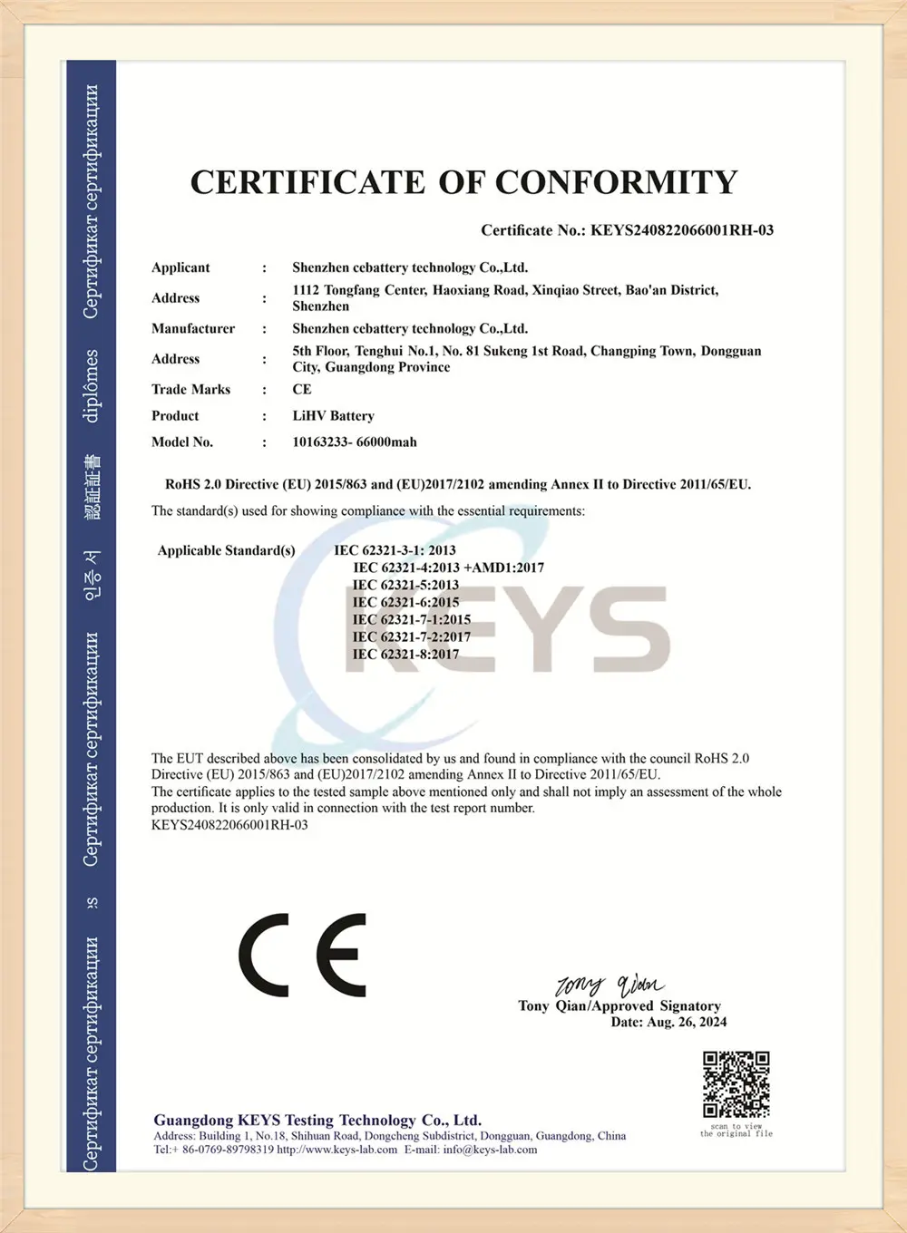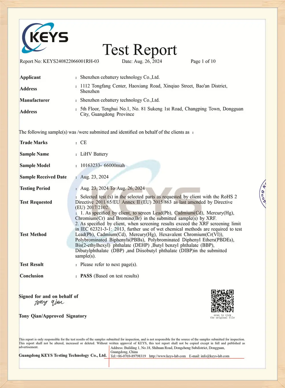 ZyebatteyVedno zasleduje poslovno filozofijo "kakovosti najprej, usmerjene v storitve, obljub za ohranjanje integritete". Da bi bili najboljši in najbolj stabilni dobavitelj baterij, zagotavljamo kakovostno tehnologijo za ponovno polnjenje baterij in Zyebattey je opravil številna pooblastila, kot so ISO9001: 2015, UL, CE, FCC, UN, 3C ETC.